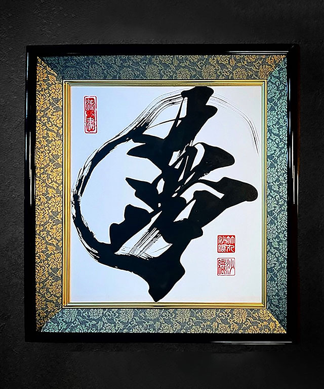 オーダーメイドで和紙を作成し竹丸さんが書を書きます。