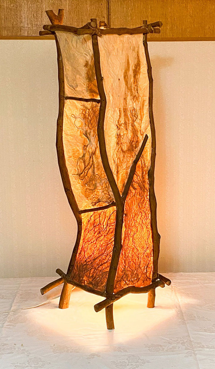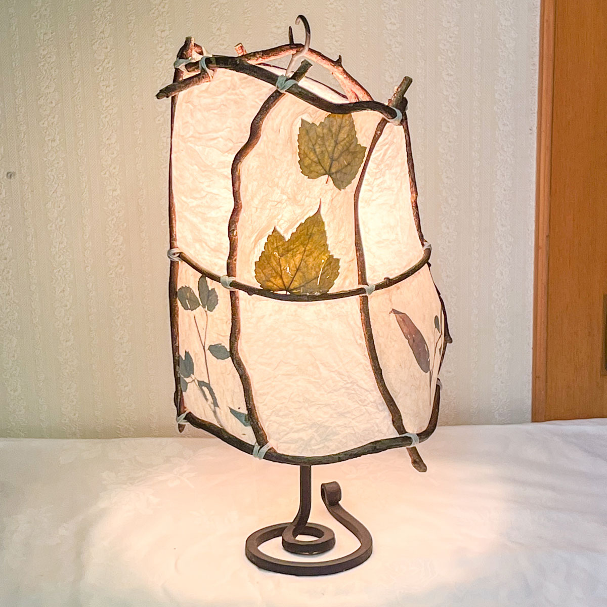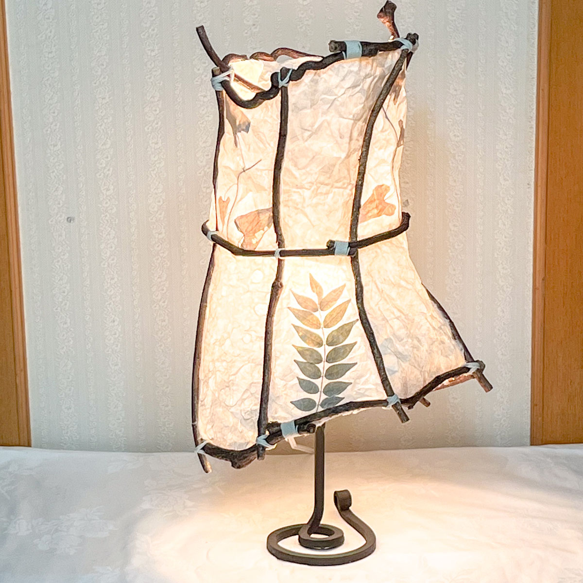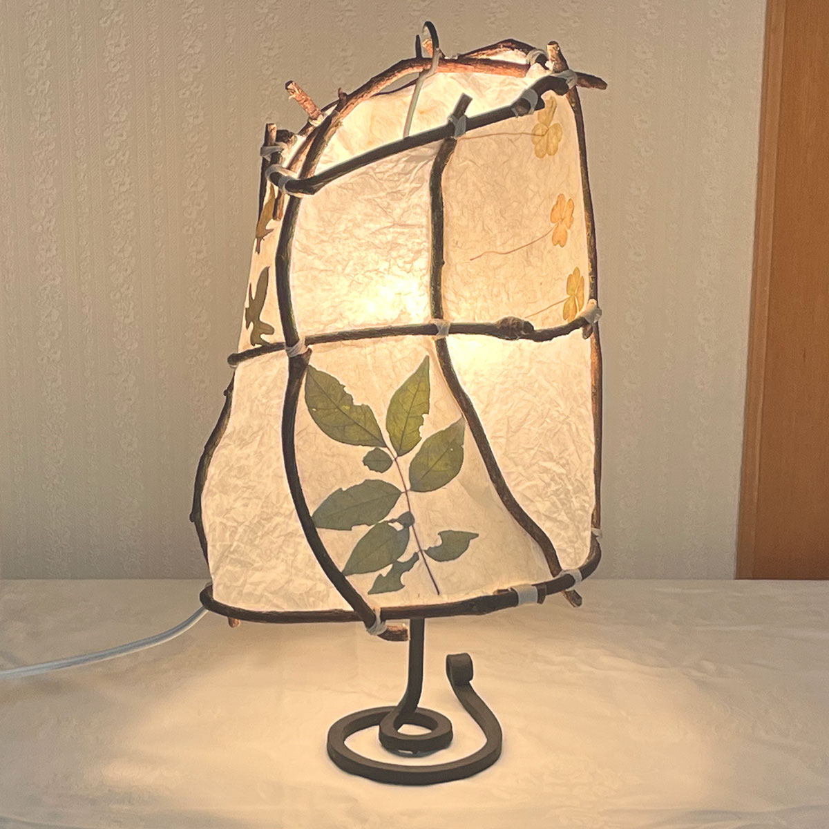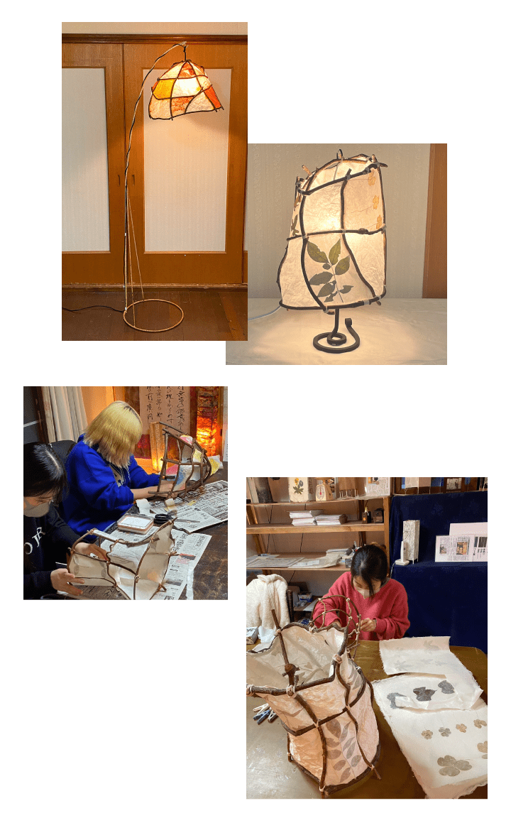 ランプの骨組みには柿渋を塗り、世界でひとつの造形に仕上げます。