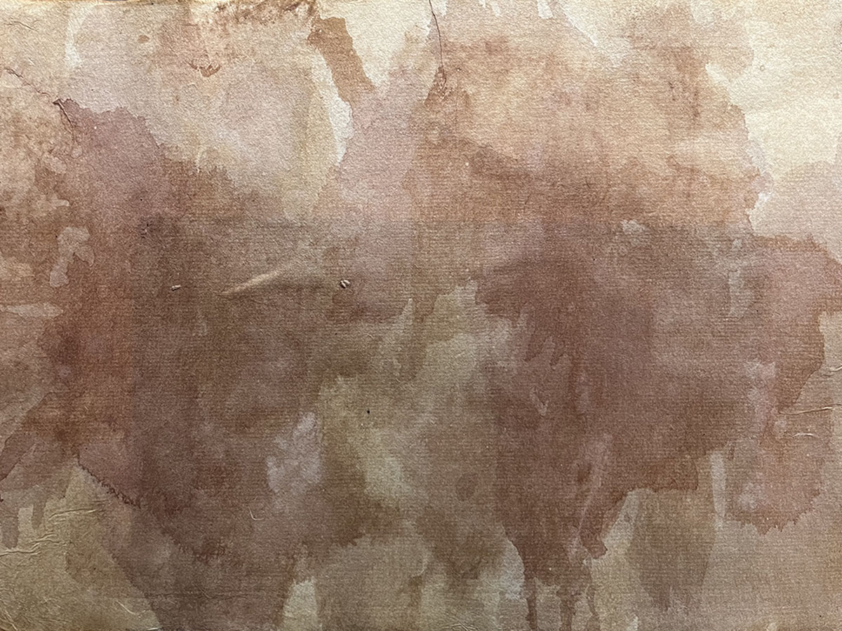 出来あがった和紙に顔料で臥龍梅の梅を描いて仕上げます。